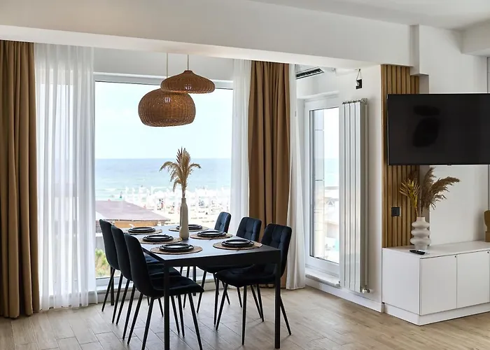 Die Gäste können im Apartment Absolute Sea View - Infinity Pool&Spa&Ev Friendly Selbstversorgereinrichtungen nutzen, einschließlich einer voll ausgestatteten Küche, und ihre Mahlzeiten in einem Essbereich genießen. Der Flughafen Mihail Kogalniceanu ist in ca. 29 Autominuten zu erreichen.